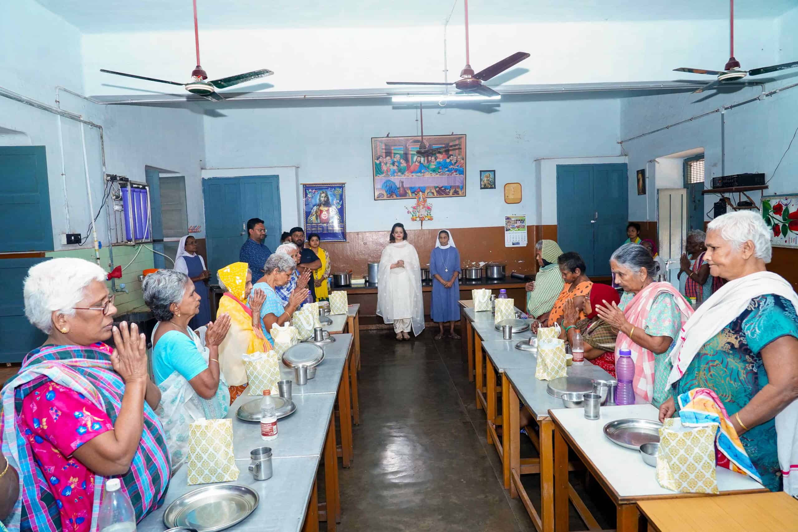 The gathering brought together around 60 senior citizens and 4 sisters for a shared meal, followed by engaging games and a Bible quiz, creating moments of joy, reflection, and togetherness. The active participation and smiles of the seniors made the day truly special.